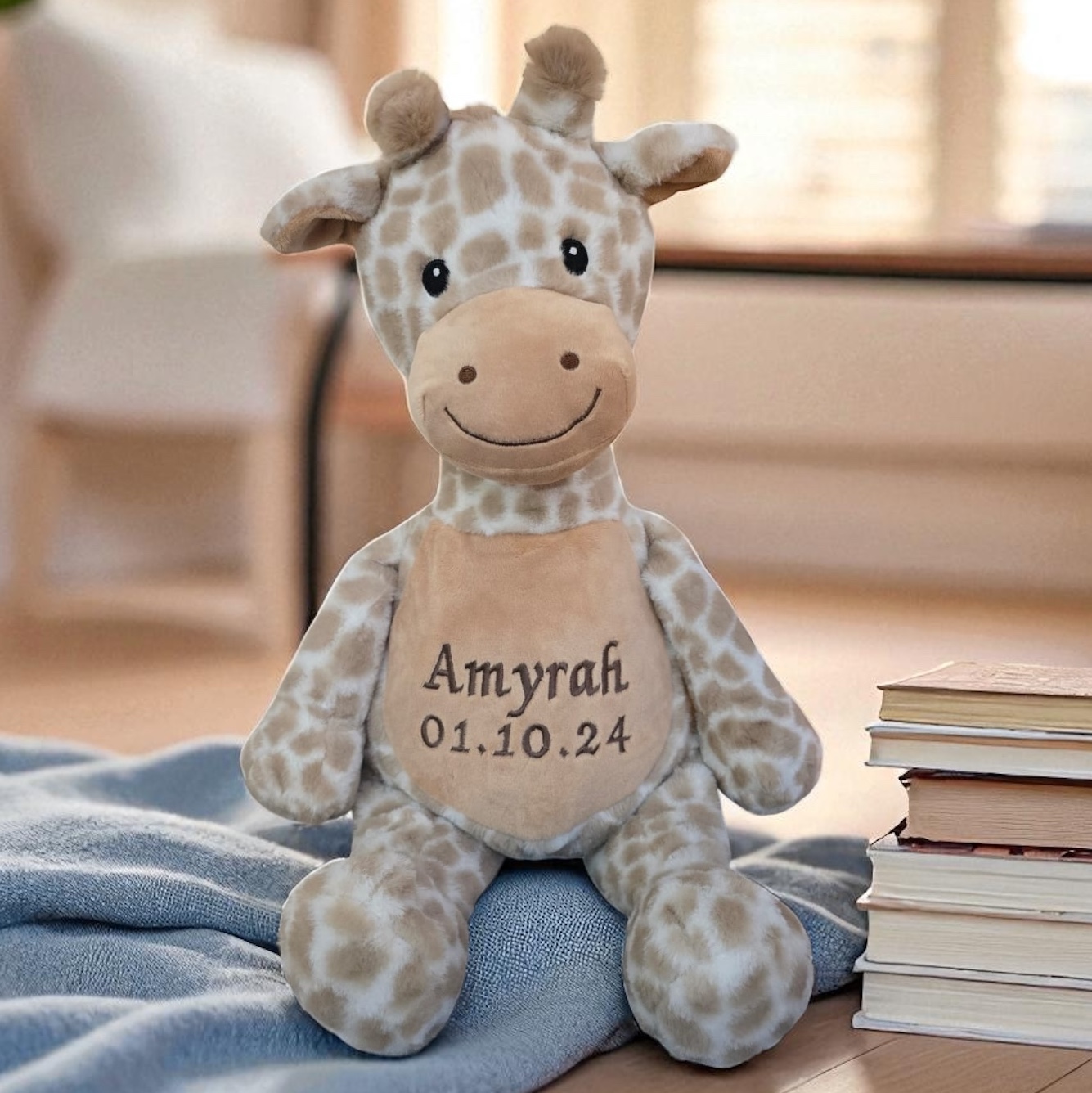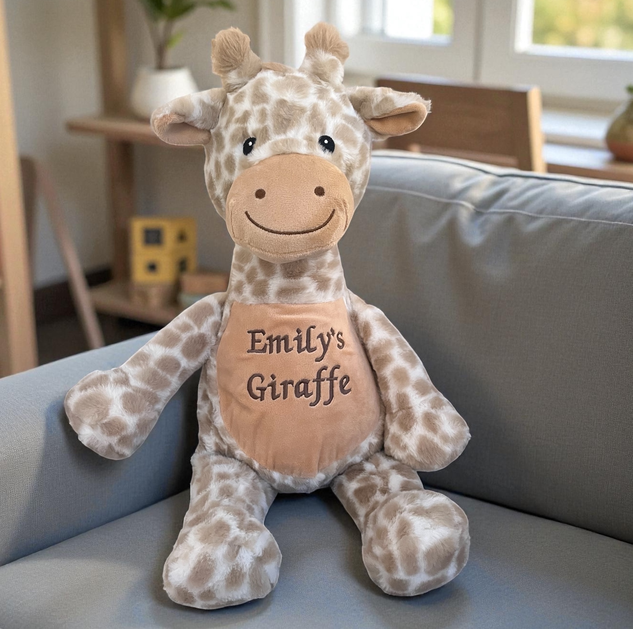 Step into a world where cuddles reign supreme and smiles come naturally – introducing our personalised giraffe. The perfect gift for all ages, from newborns to adults